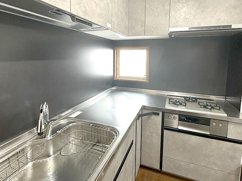シンクの位置を左側にずらし、調理スペースを広く確保しました。